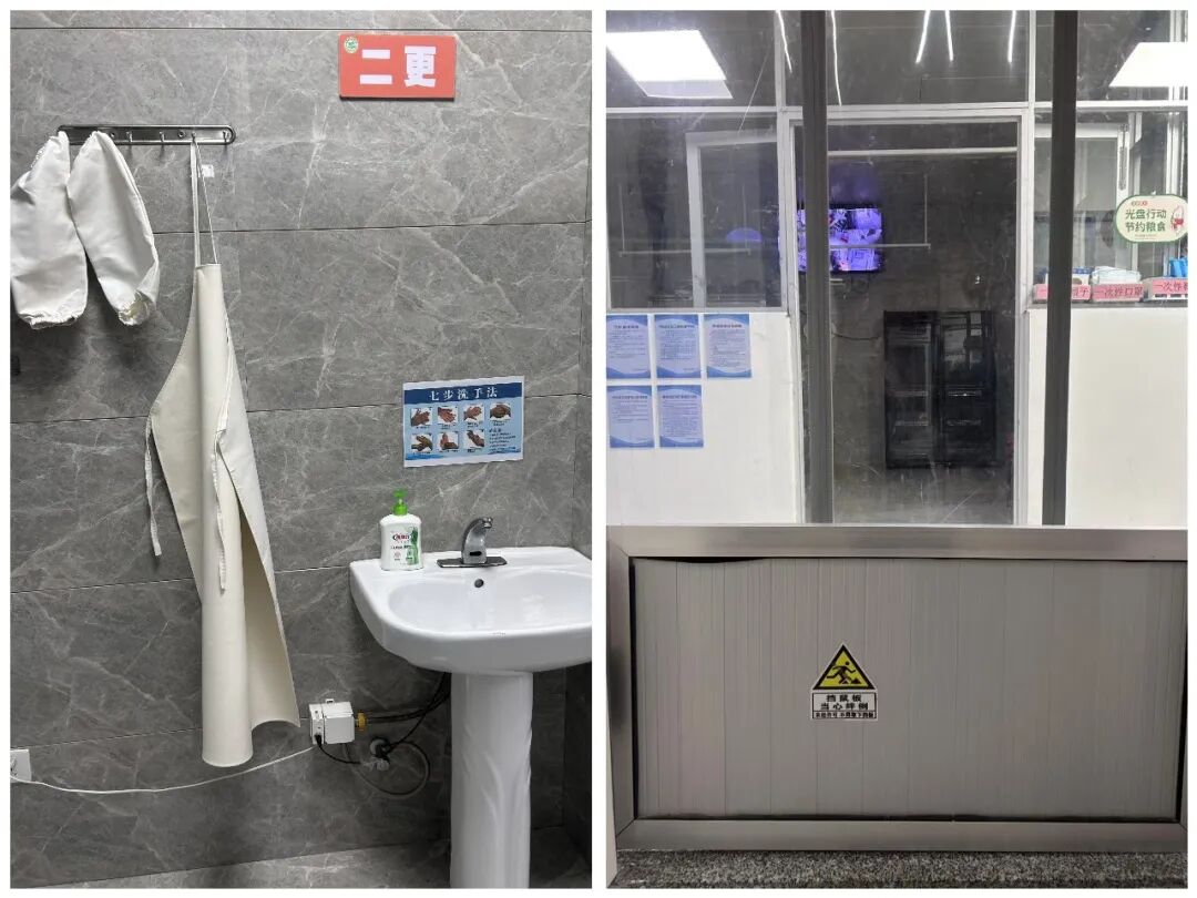 2、后厨布局科学、操作流程合理,环境卫生干净整洁,无交叉污染风险;