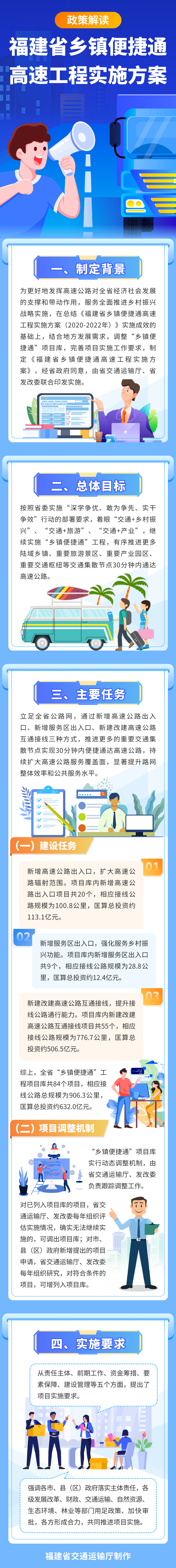 全省“乡镇便捷通”工程项目库共84个项目,相应接线公路总规模为906.3公里,匡算总投资约632.0亿元。