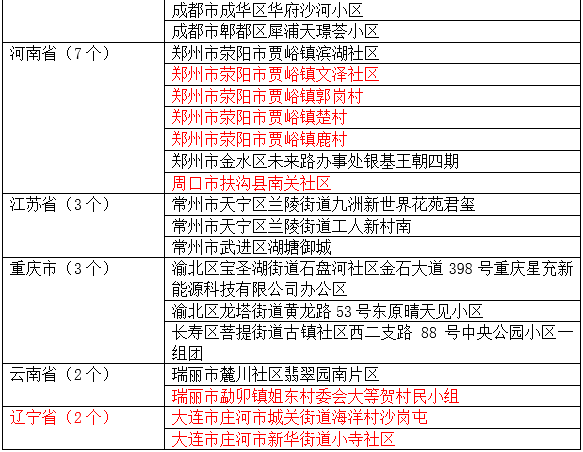 自2021年11月6日起,将荥阳市贾峪镇文泽社区、郭岗村、楚村、鹿村调整为中风险地区。