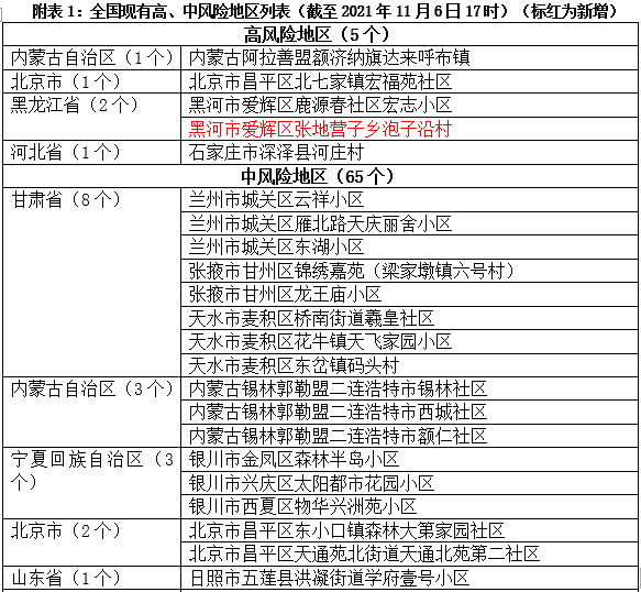 2021年11月6日0-24时,黑龙江省新增新冠肺炎本土确诊病例6例(黑河市爱辉区6例),均为集中隔离或居家隔离管控期间主动排查发现。