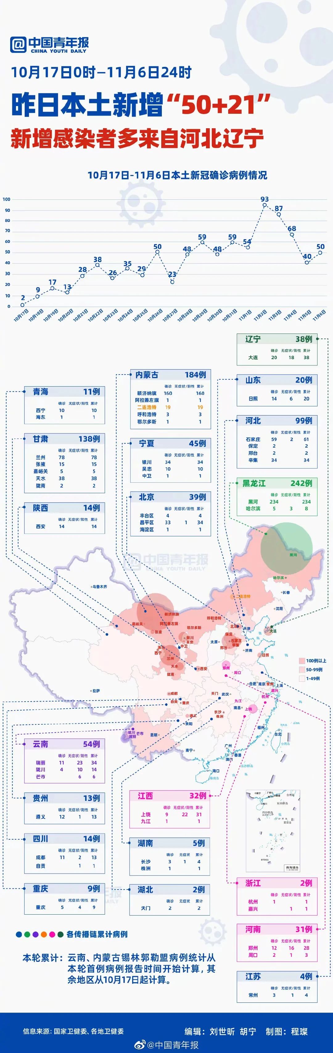国家卫健委消息:6日0—24时,31个省(自治区、直辖市)和新疆生产建设兵团报告新增新冠肺炎本土确诊病例50例。