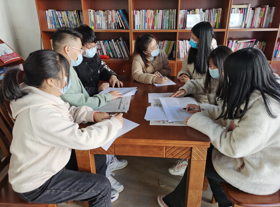同日,英山乡小板凳宣讲员们围坐乡综合文化服务中心的图书室内集体备课,你一言,我一语,你一笔,我一画,畅谈学习体会,并写下宣讲材料。