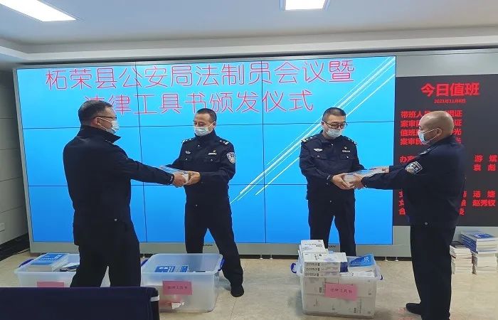 11月8日下午,县局举办了法律工具书颁发仪式并召开法制员座谈会,会议强调:一要加强学习培训。要着力开展大范围实用型执法学习培训,充分利用县局配发的法律工具书籍,加强学习,提高法律素养,提升执法办案能力和水平;二要严格案件审核。法制员要以高度的责任心来审核把关本单位案件,从源头处规范案件办理,有效提高案件质量;三要聚焦工作重点。法制大队将继续深入开展巡查工作,严格执行周通报制度,不断强化执法监督和风险防控,进一步提高执法质效。