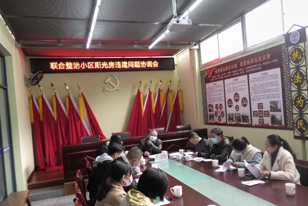 11月30日,县治违办针对小区阳光房违建问题召开整治专题协调会。会议由县治违办、县城市管理局、县自然资源局、县住建局、双城镇、东源乡、城郊乡和11家物业公司参会。