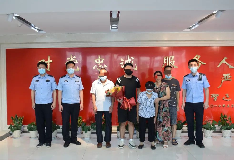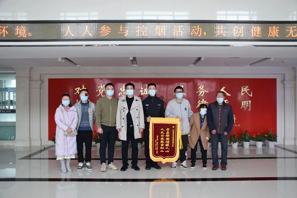 11月29日下午,肖某美一家人特意从外地驱车至柘荣县公安局,将一面印有“人民公安恩重如山 寻亲解困情暖人心”的锦旗送到民警手中,感谢公安机关让破碎19年的家庭重新团圆。