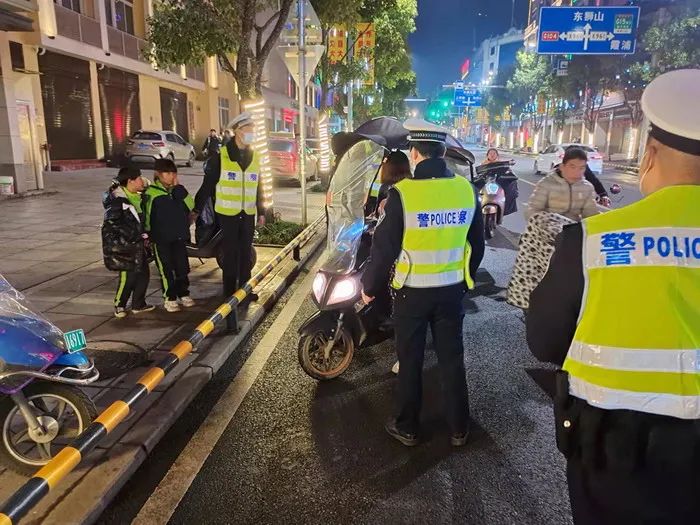 12月16日晚,交警大队开展摩托车、电动车非法加装遮阳(雨)棚专项整治行动。