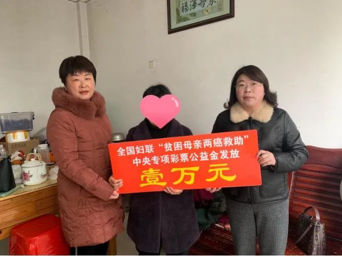 12月20 日,县妇联主席江丽琴、副主席汪雪华深入“两癌”低收入妇女家中,了解患病妇女病情及家庭情况,在了解到患者上有九十多岁患有老年痴呆的公公需要赡养、丈夫患有脑溢血后遗症等情况后,鼓励她积极面对生活,保持乐观向上的阳光心态,把党的关爱化作战胜疾病的力量,早日恢复健康。并送上全国妇联2021年度中央专项彩票公益金(彩票公益金资助——中国福利彩票和中国体育彩票)支持低收入妇女“两癌”救助金一万元,送去党和政府的关怀和妇联组织的温暖。