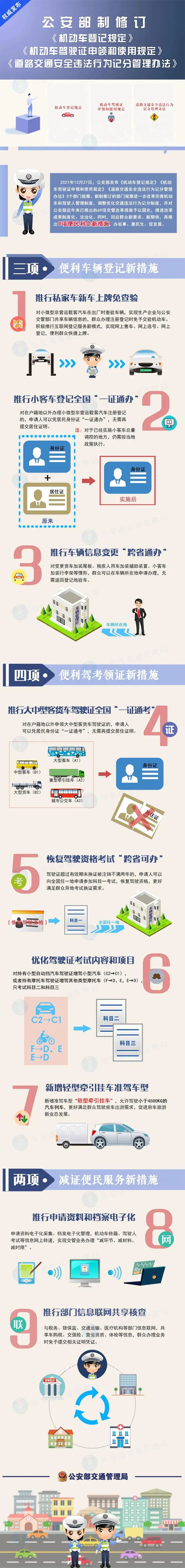 公安部制修订《机动车登记规定》《机动车驾驶证申领和使用规定》《道路交通安全违法行为记分管理办法》