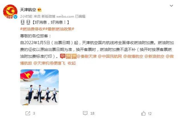 此次取消征收,也是航油价格下降后的结果。上周五(2021年12月31日)国际油价下跌超2%,终结了连续7个交易日的上涨。