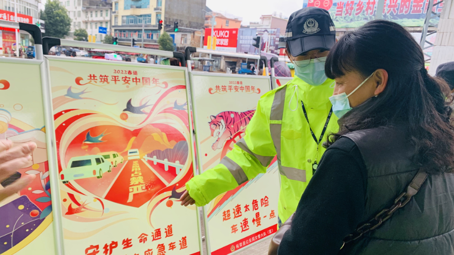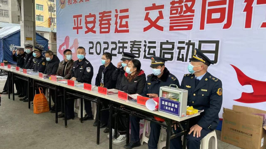 1月17日9时,柘荣县公安局交警大队会同道安办、交通运输局、应急局、公路发展中心、气象局、交通执法大队、交通事业发展中心、宁德高速交警支队四大队在客运站举办了2022年春运启动仪式,此次活动紧扣“平安春运 交警同行”主题,营造出浓厚春运交通安全宣传氛围。