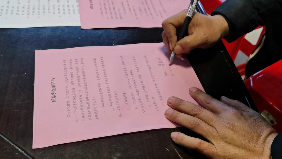 “价格好了,再辛苦也是值得的。”村民们吃下了定心丸,纷纷签订了《质量安全承诺书》,同时会上还将生态茶园建设纳入了村规民约,形成家家支持、人人参与生态茶园建设的良好局面,生态种植在村里理念蔚然成风。