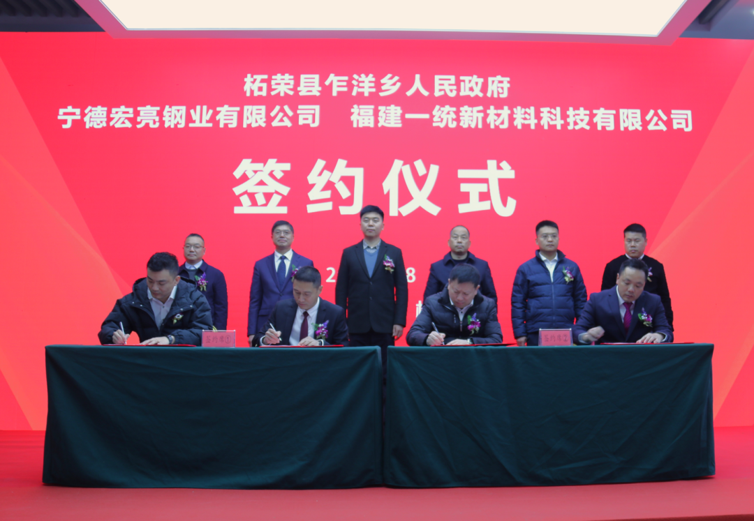 ▲乍洋乡与宁德宏亮钢业有限公司、福建一统新材料科技有限公司签约