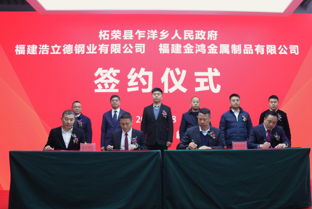 ▲乍洋乡与福建浩立德钢业有限公司、福建金鸿金属制品有限公司签约