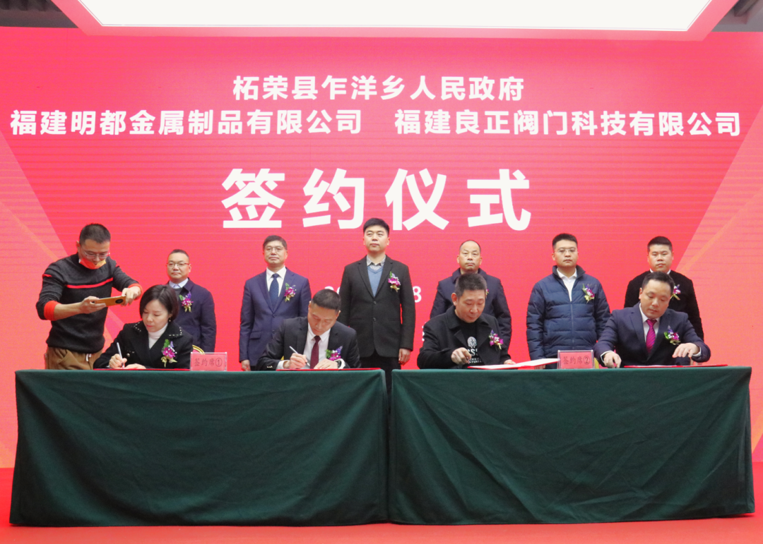 ▲乍洋乡与福建明都金属制品有限公司、福建良正阀门科技有限公司签约