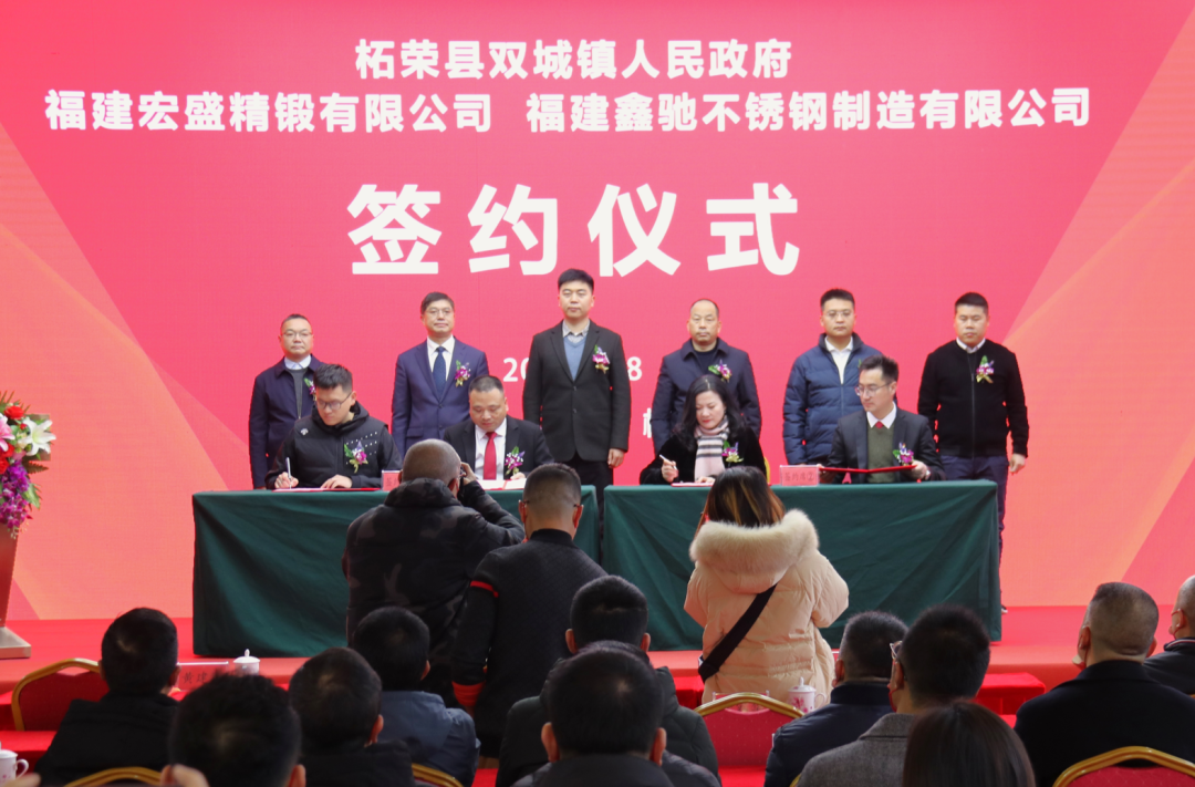 ▲双城镇与福建宏盛精锻有限公司、福建鑫驰不锈钢制造有限公司签约