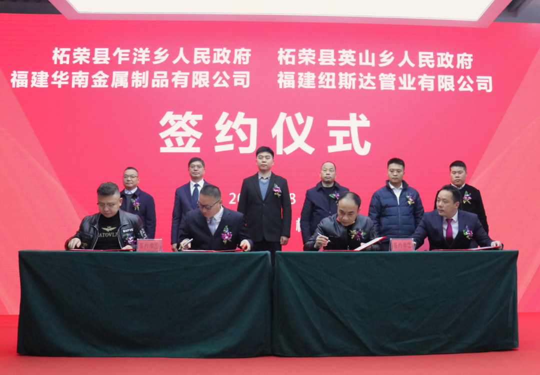 ▲乍洋乡、英山乡分别与福建华南金属制品有限公司、福建纽斯达管业有限公司签约
