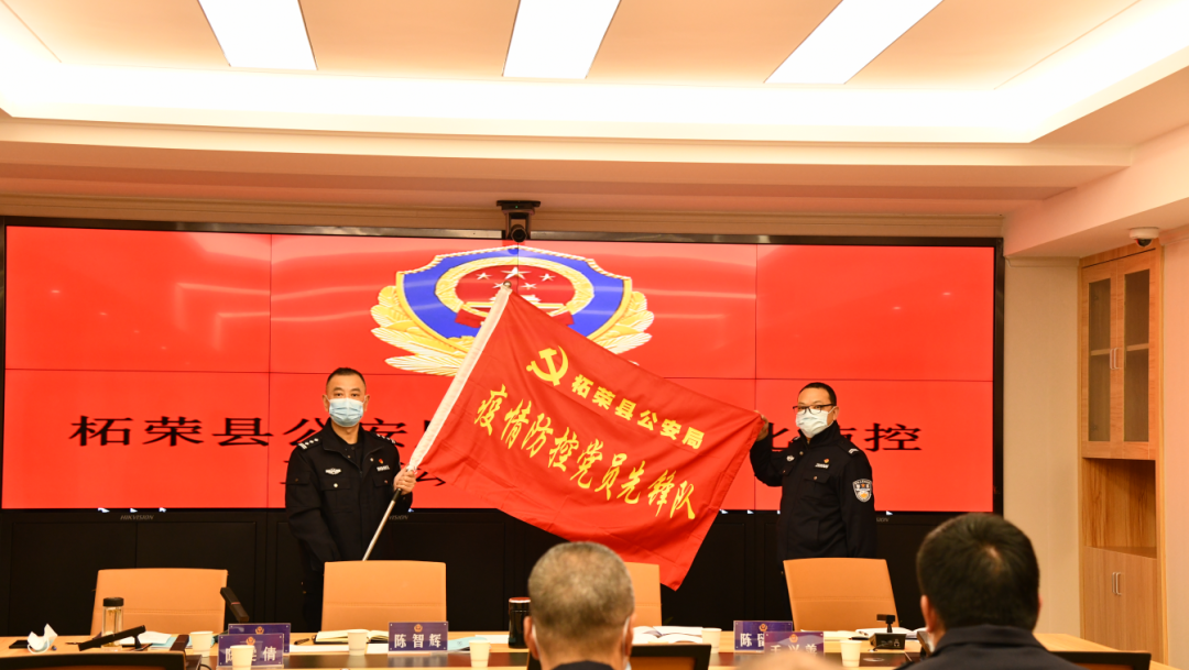 会上,崔吓瑞局长为疫情防控党员先锋队授旗,并作强调讲话: