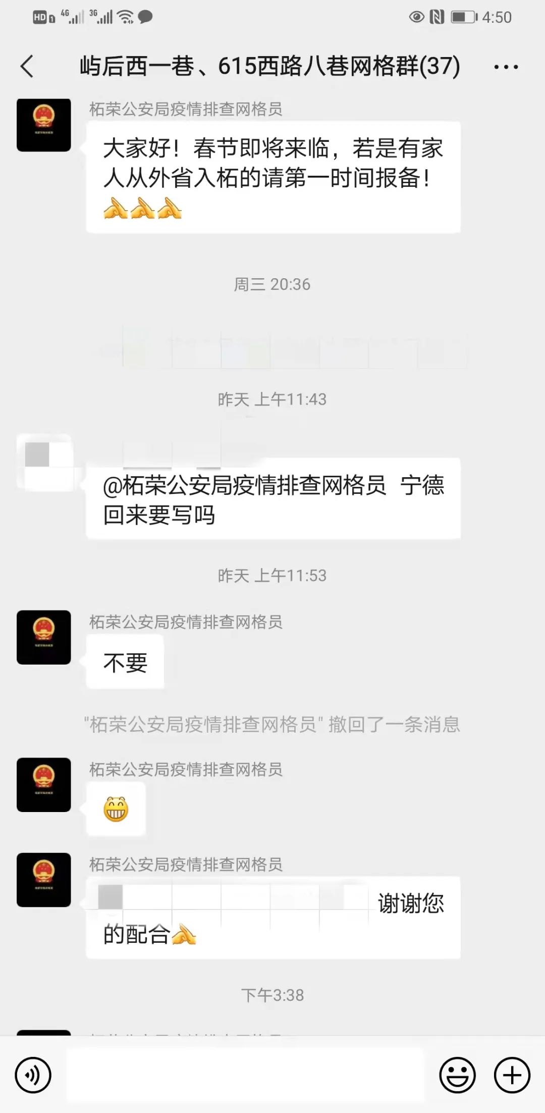 按照柘荣县中心城区新冠肺炎全员核酸检测的工作方案,城郊乡湄洋村为县公安局共建单位。县公安局网格员们以“五微”工作法为依托,入户后建立微信群,每户一人加入微信与辖区群众形成线上线下联动。