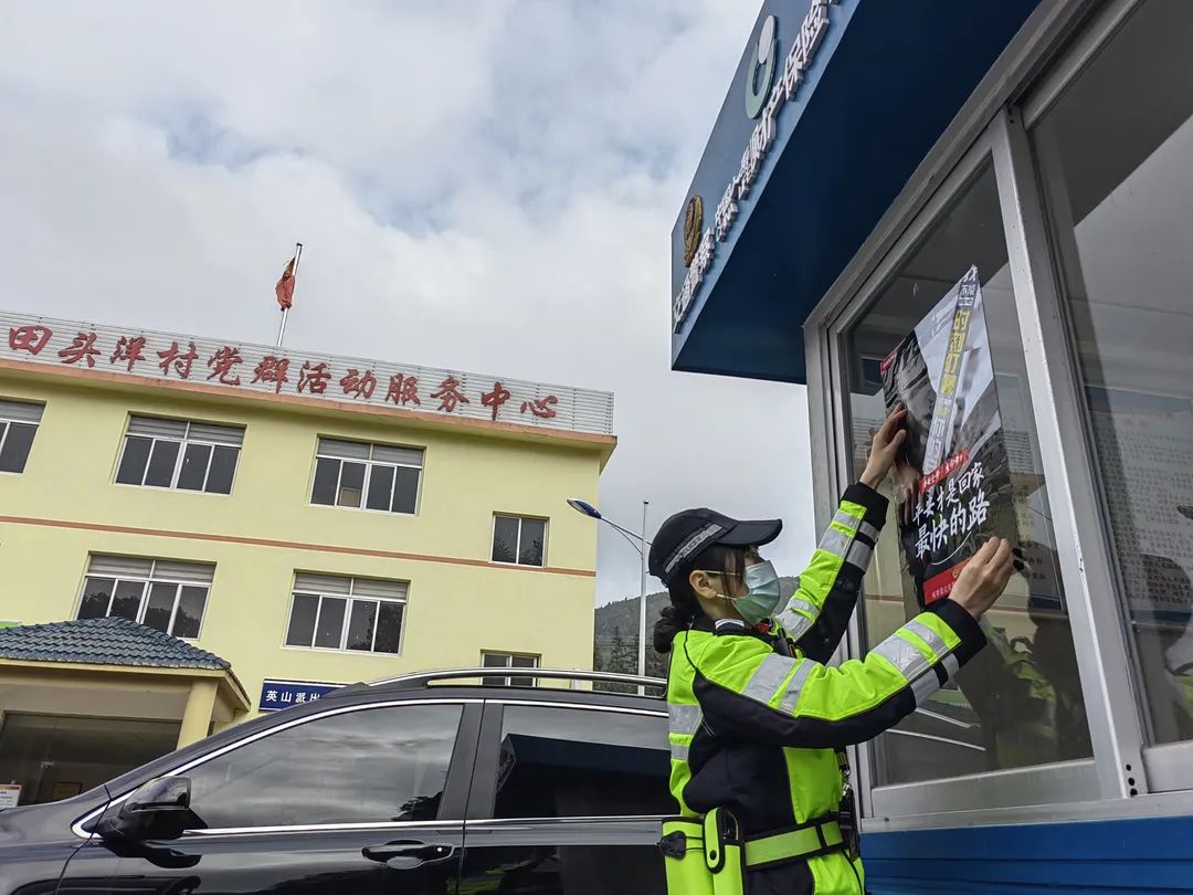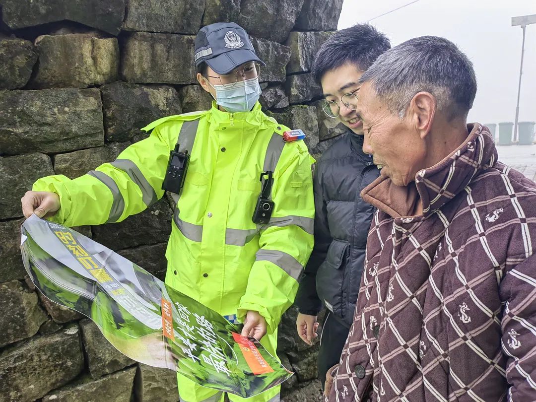 柘荣女骑相继走进城郊乡王竹坪村,英山乡田头洋村,黄柏乡黄柏村、上黄柏村和游家边村,通过小喇叭喊话、面对面宣讲和粘贴海报等多种形式,向农村“一老一小”重点群体,宣讲“三超一疲劳”“双违”、酒醉驾等易发严重违法行为的危害性,提醒村民在雨雪冰冻天气下行驶要降低车速,保持安全车距,轻踩刹车,避免急打方向等,确保出行安全。