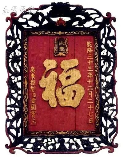 乾隆皇帝御赐甘国宝“福”字匾 来源:全景屏南