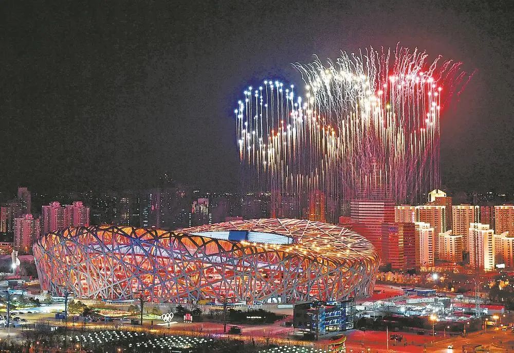 2月4日晚,第二十四届冬季奥林匹克运动会开幕式在北京国家体育场举行。这是焰火表演。新华社记者 李鑫/摄
