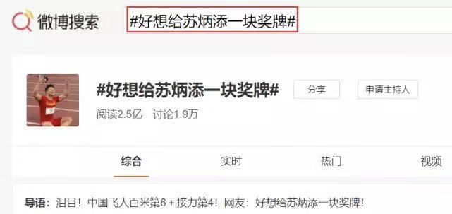 赛后,不少网友表示“好想给苏炳添一块奖牌!”该话题也登上了热搜。