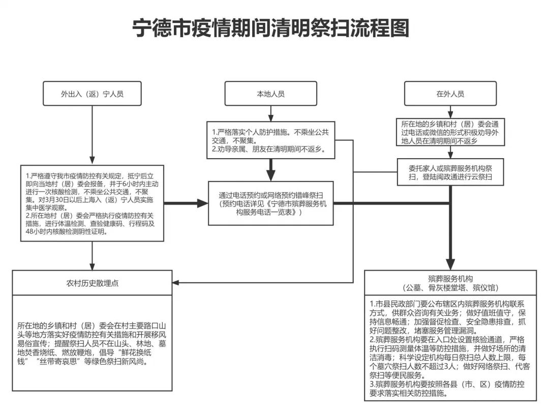 市民政局相关负责人表示,各地可根据疫情防控实际决定是否开放殡葬服务机构,对暂停现场祭扫的地方,要积极创新服务模式,提供网络祭扫、代客祭扫等便民服务。对开展现场祭扫的地方,要严格实行预约、分时、错峰、限流祭扫等管控措施,降低祭扫人流密度,减少祭扫现场人员聚集。