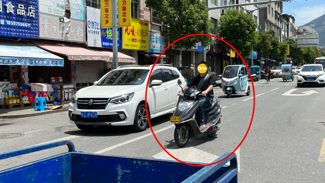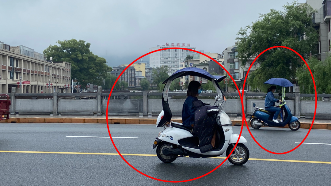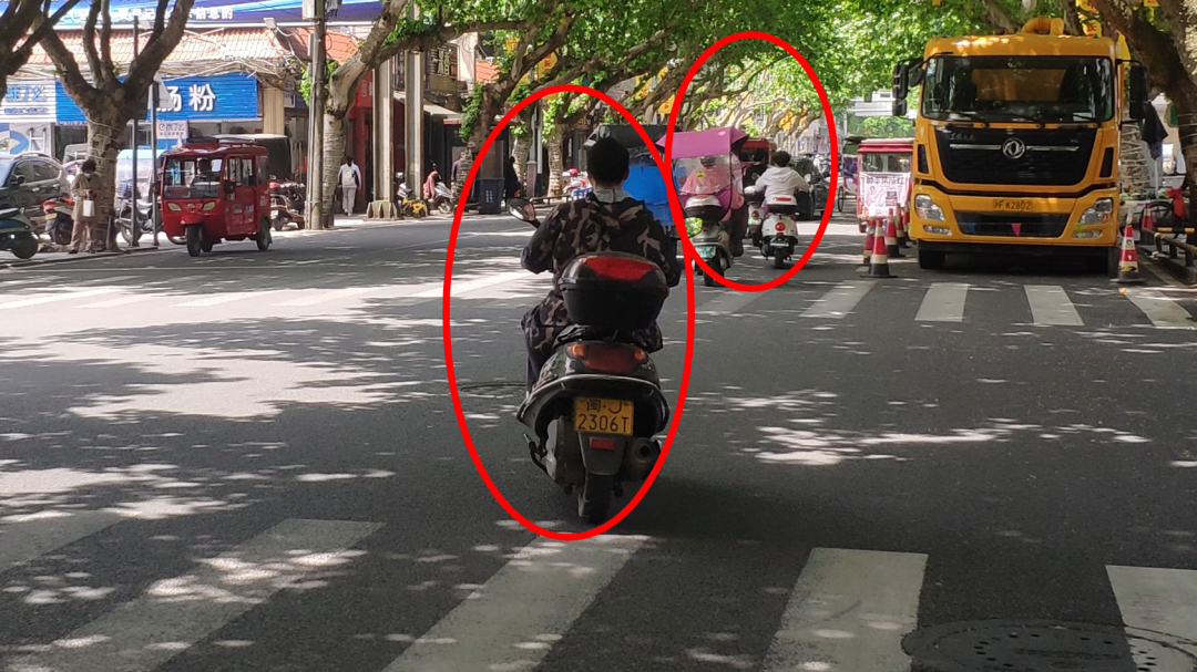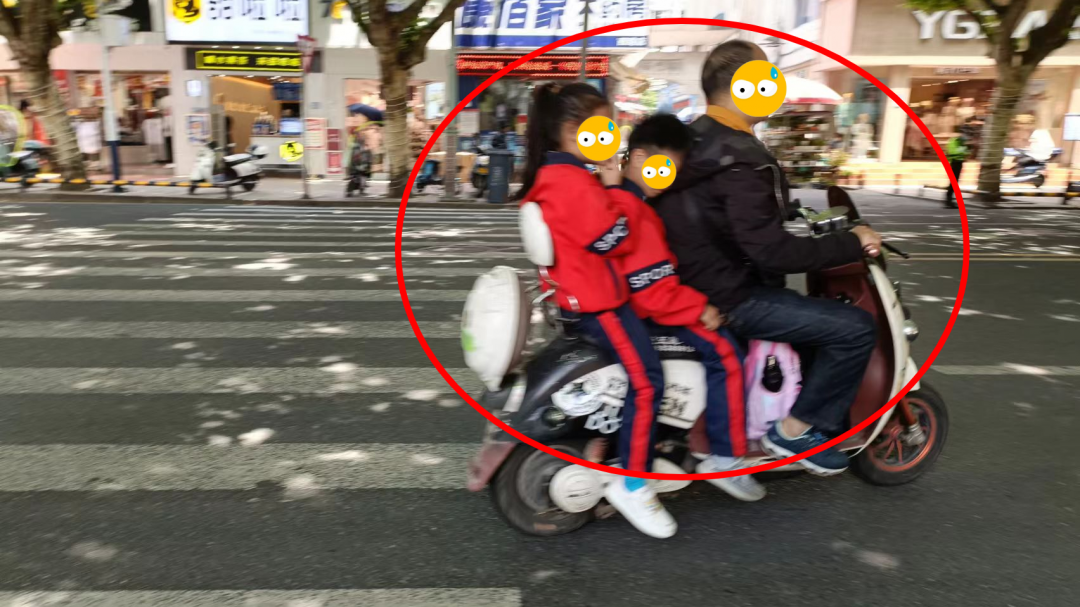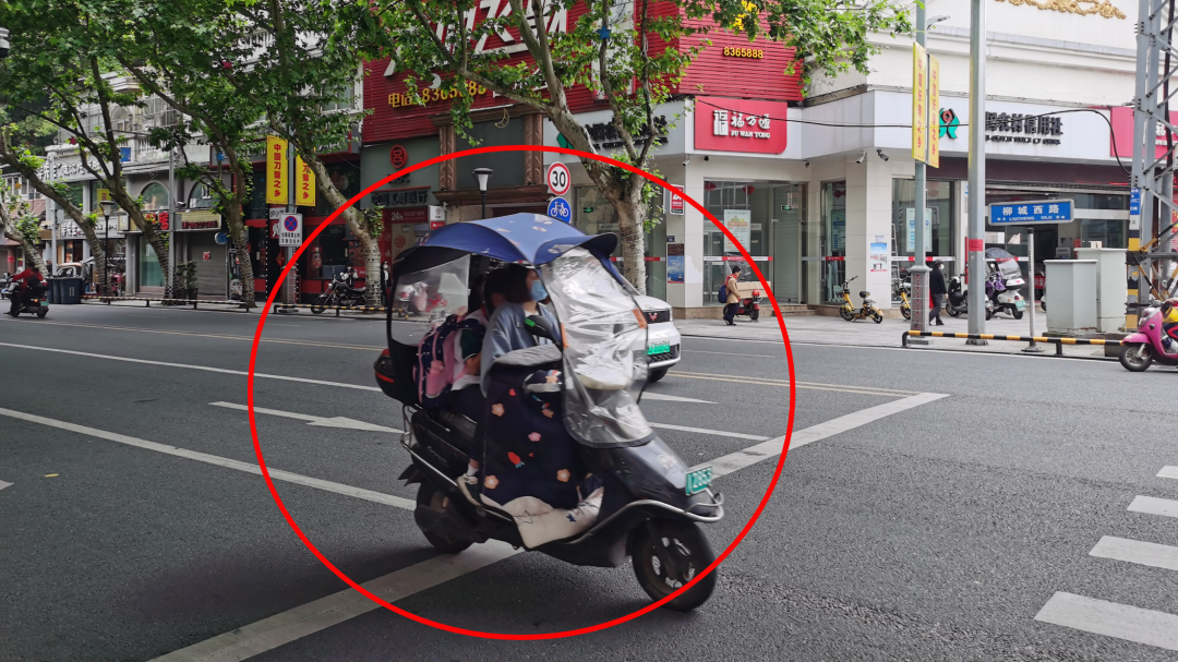 【违法行为】:行人不走斑马线、违法加装遮阳(雨)篷、未佩戴安全头盔