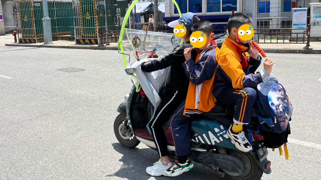 【违法行为】:违法加装遮阳(雨)篷、未佩戴安全头盔