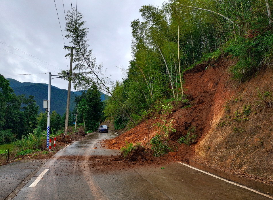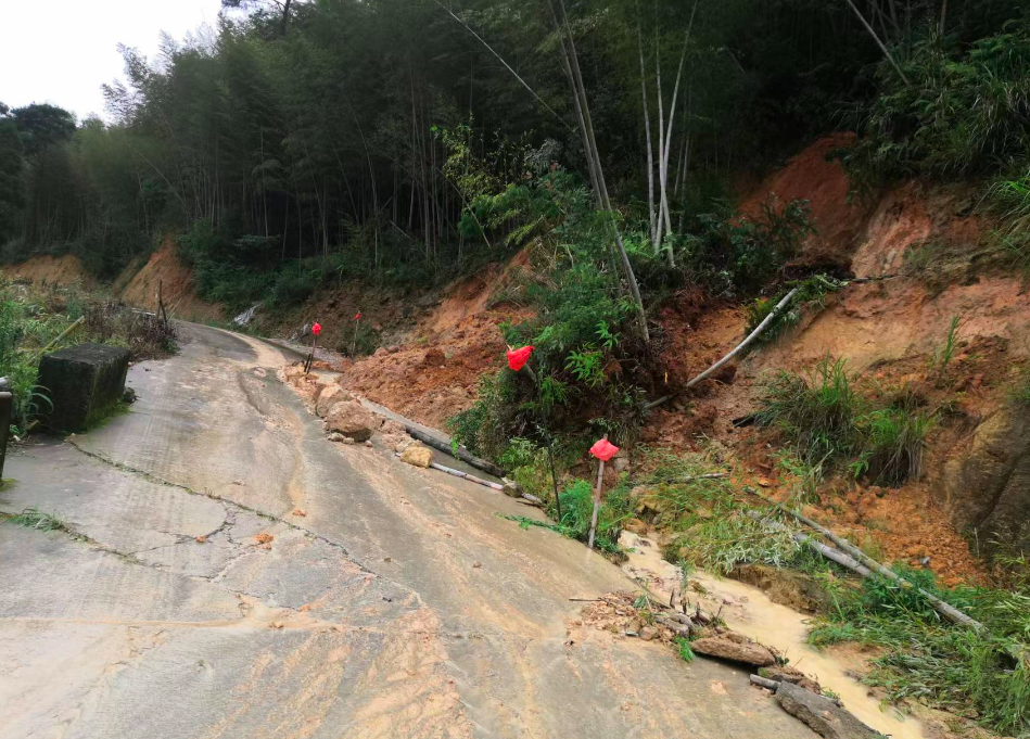 ▲东源乡桃坑村至上泥村方向道路出现塌方。