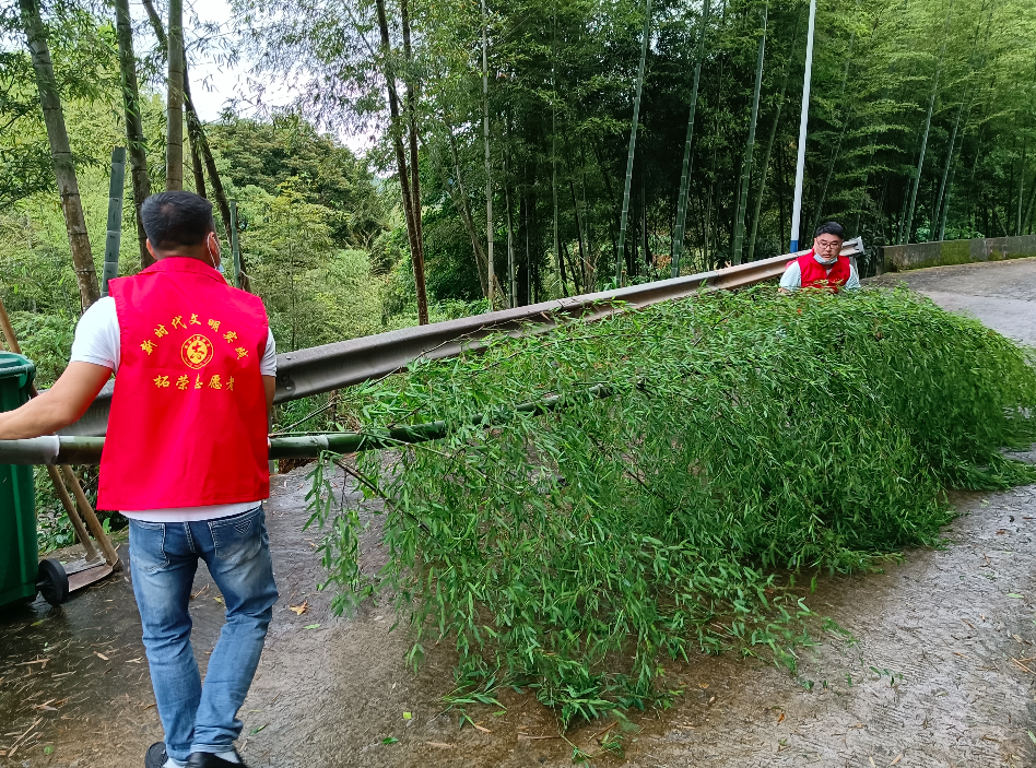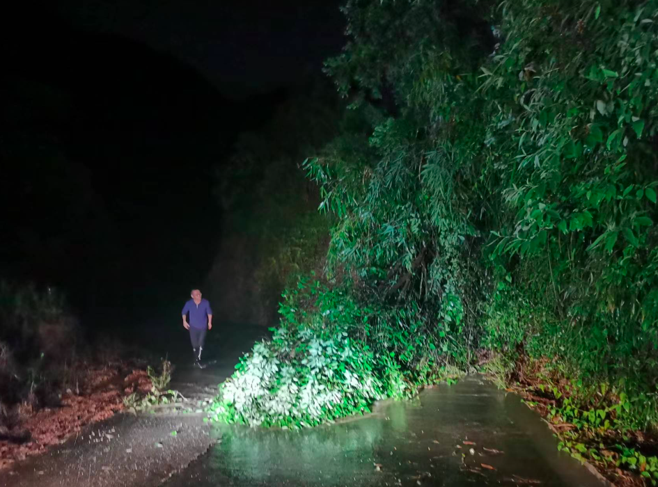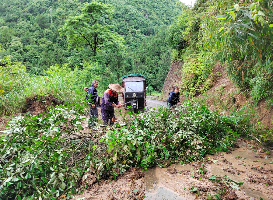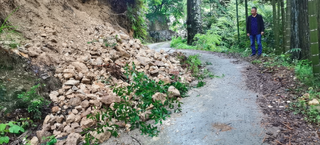 ▲楮坪乡茶湾村出现道路塌方,党员干部前往进行道路抢险救援。