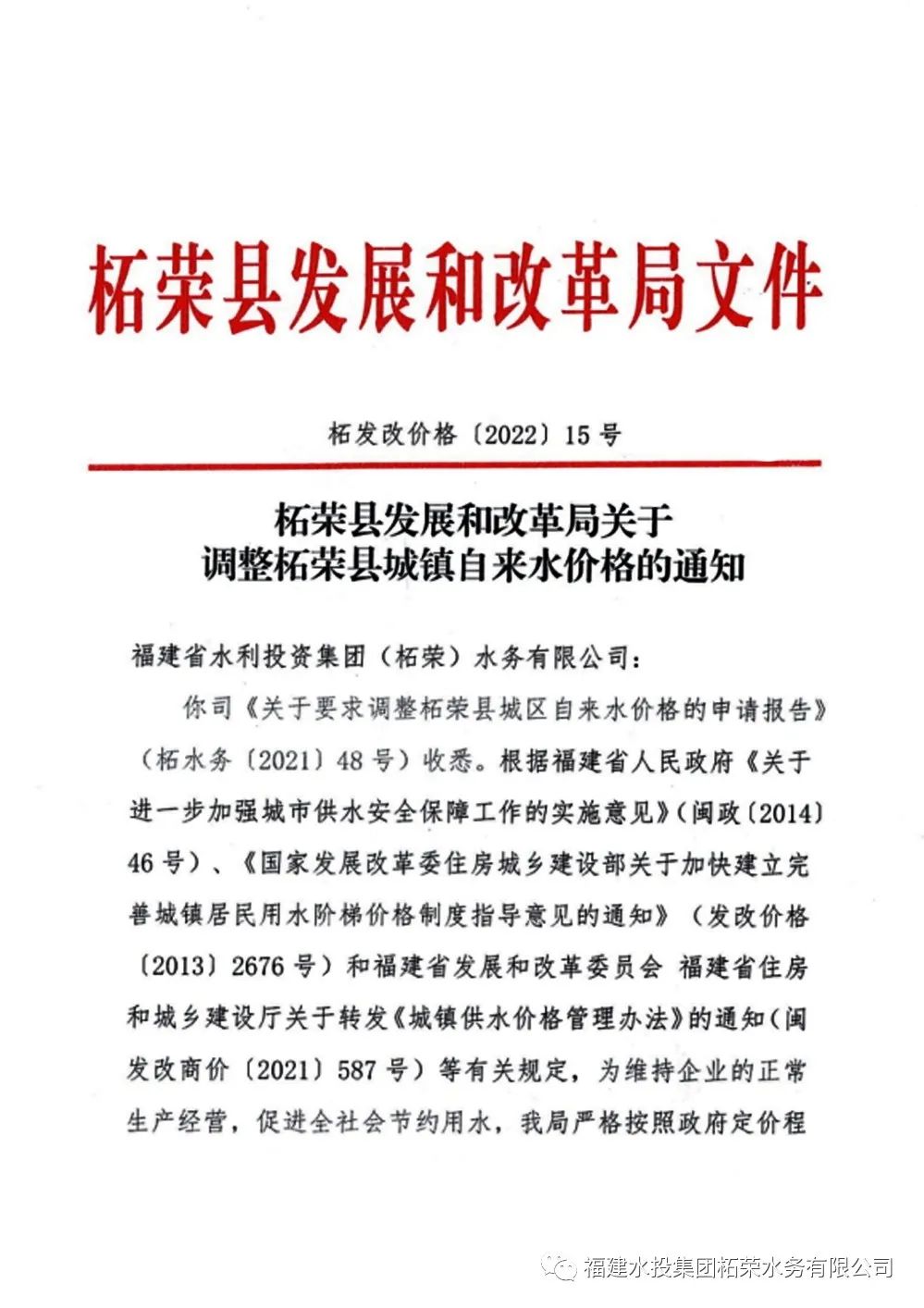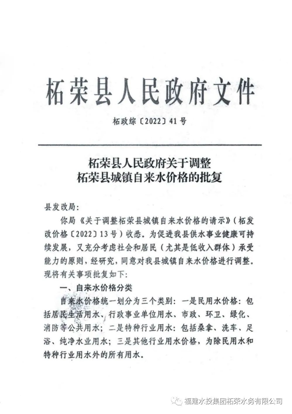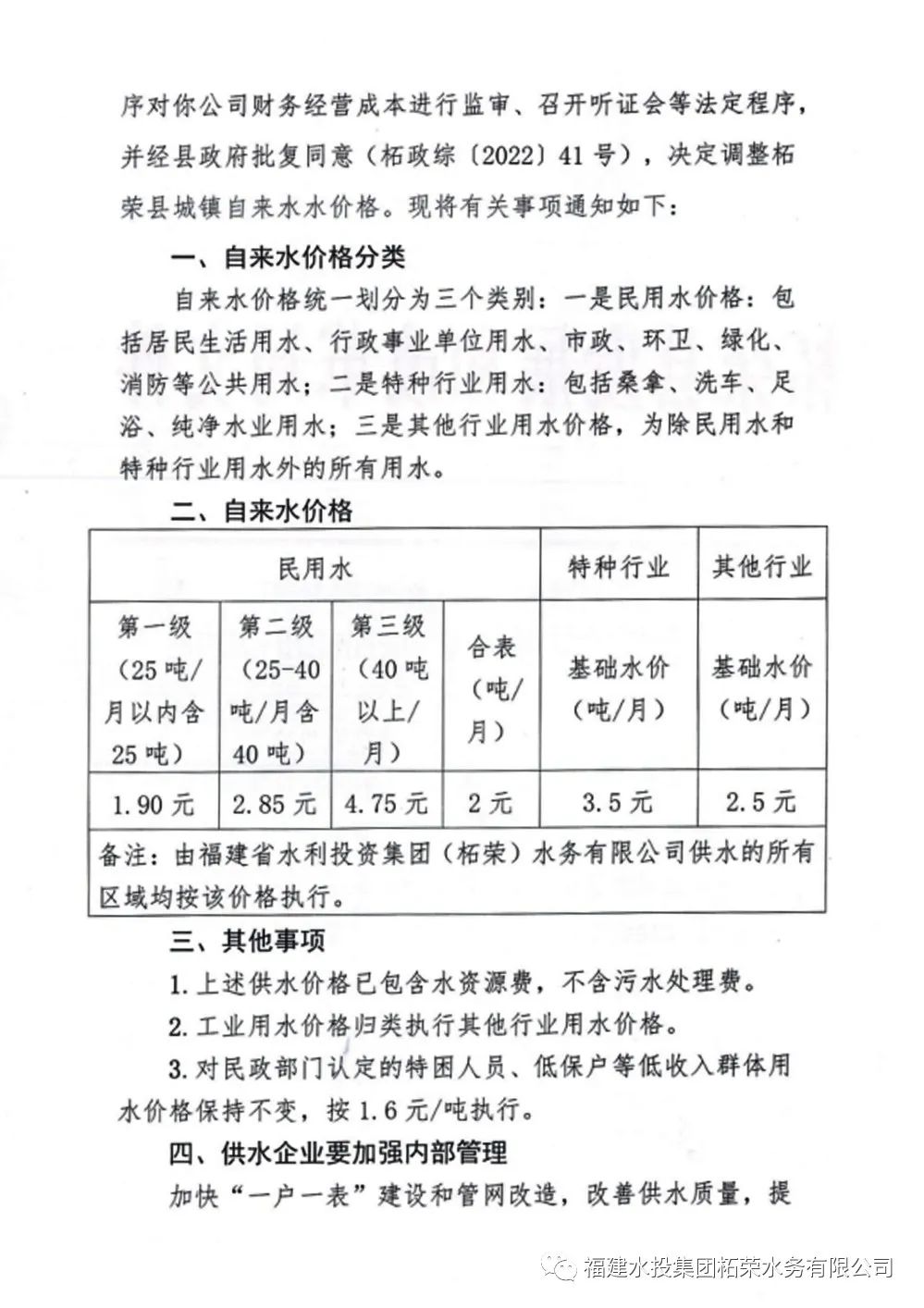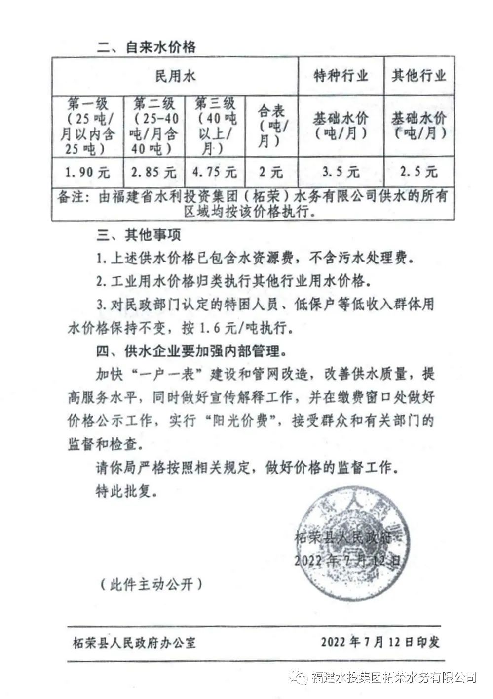备注:由福建省水利投资集团(柘荣)水务有限公司供水的所有区域均按该价格执行。 | |||||