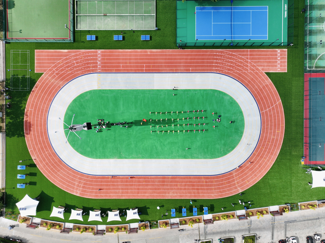 一圈圈鲜明的橙色跑道