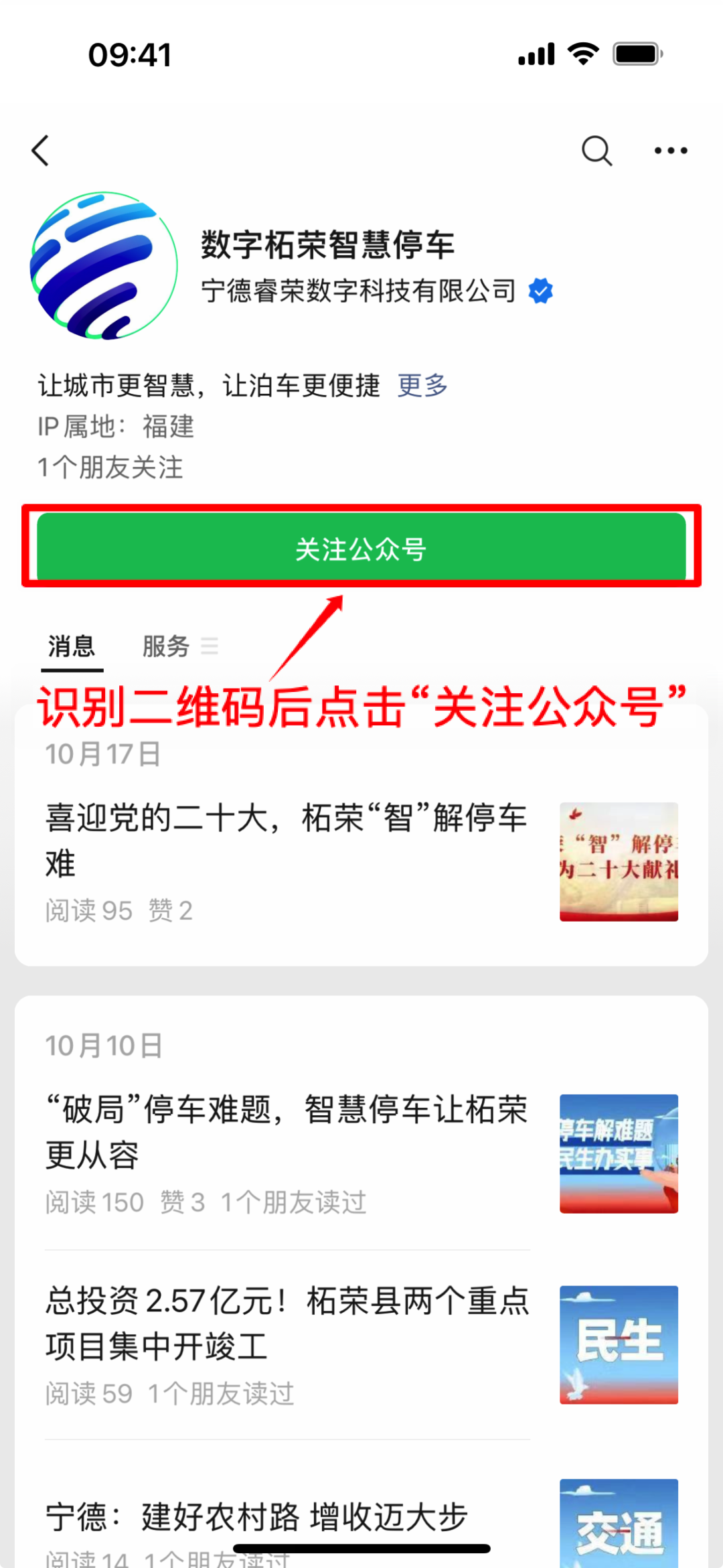 长按识别下图二维码即可关注“数字柘荣智慧停车”公众号。