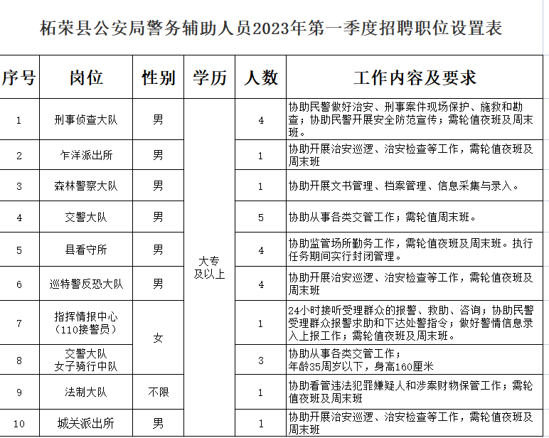 6、聘用人员按照县公安局有关规定,组织开展岗前培训。