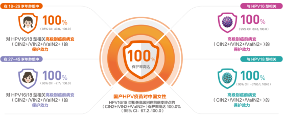 o国产二价®高度癌前病变保护效力100%、6个月持续性感染保护效果97.8%;