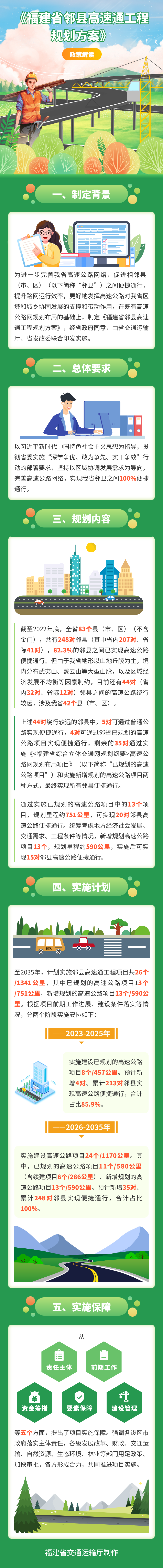 方案提出,至2035年,计划实施邻县高速通工程项目共26个/1341公里,其中已规划的高速公路项目13个/751公里,新增规划的高速公路项目13个/590公里。