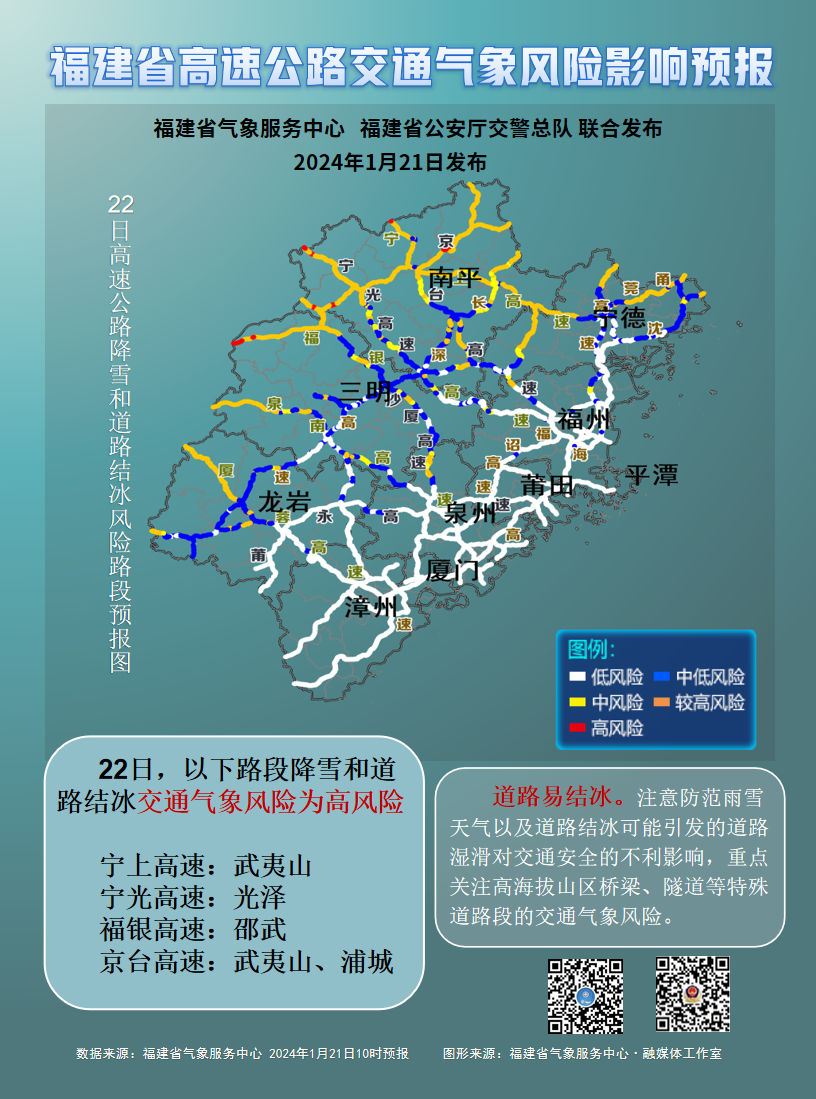 省气象台于1月19日10时发布“低温预警Ⅳ级”,据气象预报,21日夜间到23日,全省将有300个以上乡镇气温达到0℃以下并出现降水。根据《福建省低温天气应急预案》,省减灾委决定于2024年1月21日12时启动低温天气Ⅳ级应急响应。请各设区市和平潭综合实验区减灾委、省减灾委相关成员单位密切关注低温雨雪冰冻灾害情况,做好各项防范应对准备,细化安排部署防御工作。